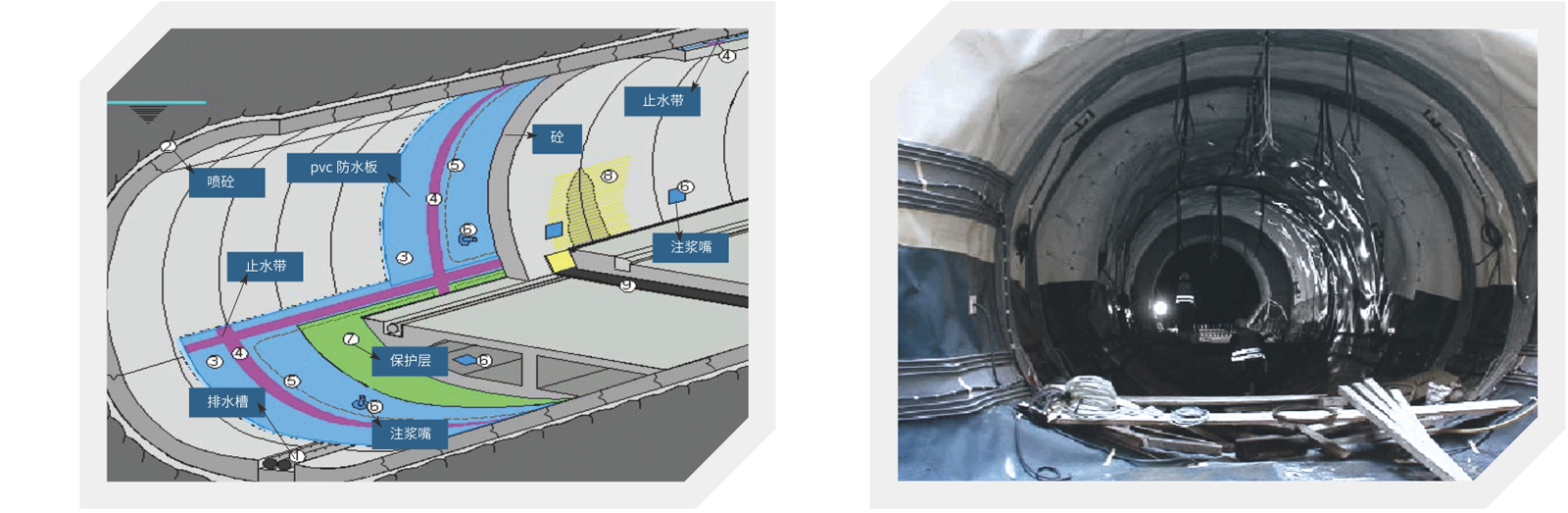 傳統(tǒng)的礦山法隧道基本上以塑料板(EVA、PVC、ECB等)為主體材料進(jìn)行防水設(shè)防,在國內(nèi)現(xiàn)有的施工條件和組織形式下,滲漏很普遍,嚴(yán)重影響行車安全和結(jié)構(gòu)壽命,給后期維護(hù)帶來沉重的負(fù)擔(dān)。