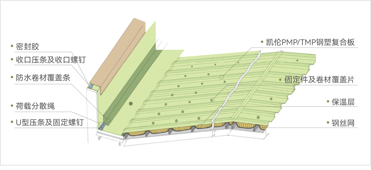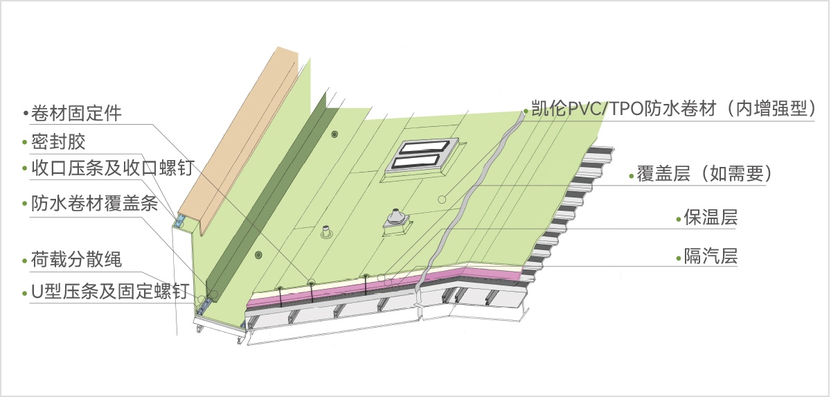 受益于政策、新標(biāo)準(zhǔn)的推動(dòng),高分子卷材市場(chǎng)應(yīng)用前景較好;國(guó)內(nèi)高分子卷材市占率較低、成長(zhǎng)性好,市場(chǎng)空間超百億,隨著國(guó)家“十四五規(guī)劃”碳中和計(jì)劃推動(dòng),高分子市場(chǎng)將迎來(lái)新的發(fā)展機(jī)遇,應(yīng)用場(chǎng)景更加多元化,其中單層屋面系統(tǒng)、光伏屋頂系統(tǒng)及地下種植頂板更具發(fā)展?jié)摿Α?